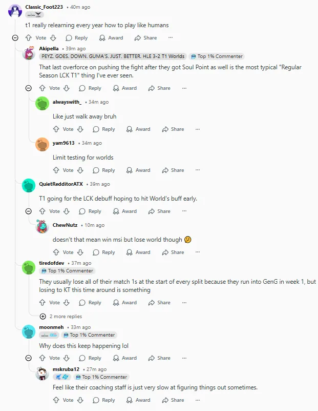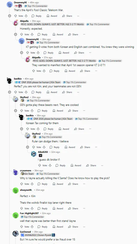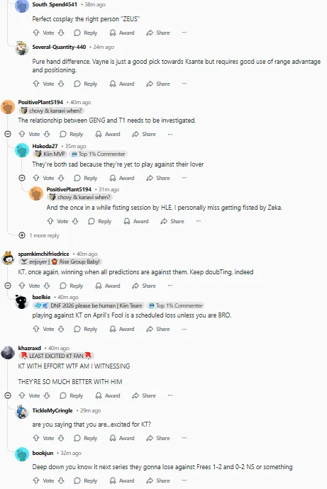 今日,KT2:0击败T1,在外网引起热议,部分评论翻译如下:(未经允许禁止转载、搬运截图)