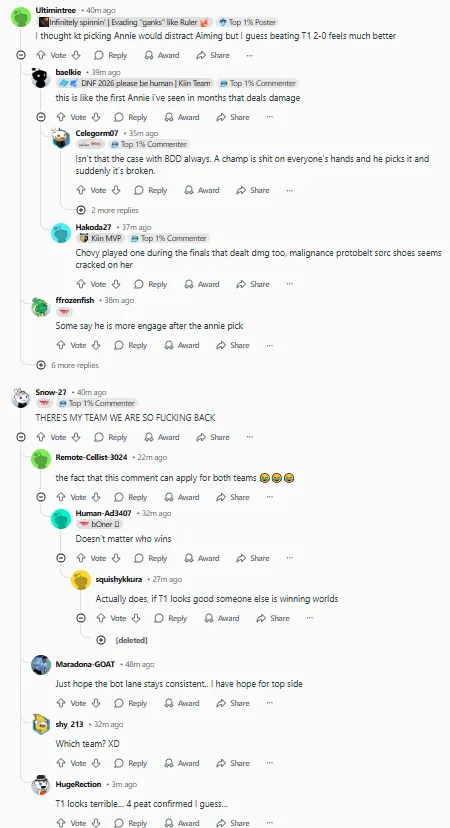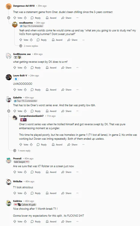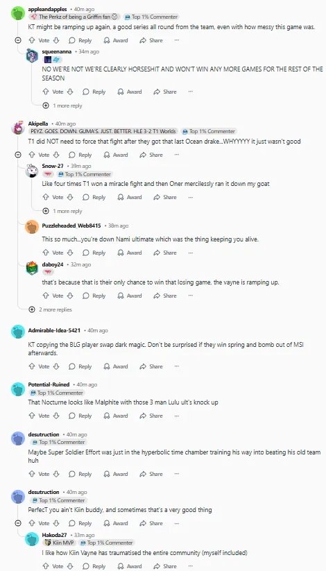 今日,KT2:0击败T1,在外网引起热议,部分评论翻译如下:(未经允许禁止转载、搬运截图)